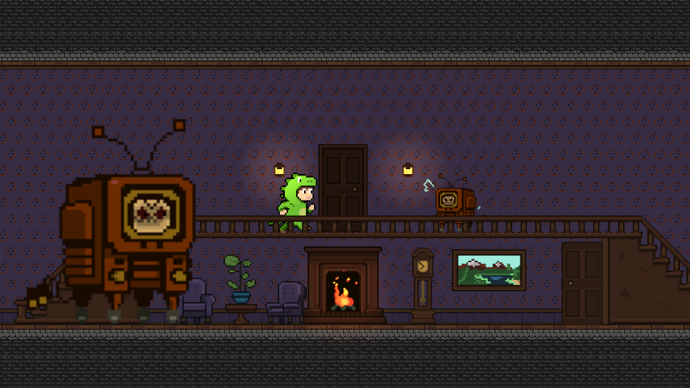 A haunted TV crashes your Halloween night and now it is chasing you throughout your own mansion!